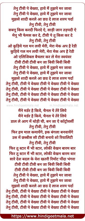 Lyrics of Tainu Tv Pe Wekhya, Haaye Main Tujpe Marr Jawa - तेनु टीवी पे वेख्या, हाये मैं तुझपे मर जावा