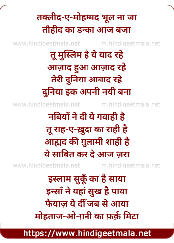 Lyrics of Taklid E Mohammad Bhul Naa Jaa - तक्लीद-ए-ंओहम्मद भूल ना जा