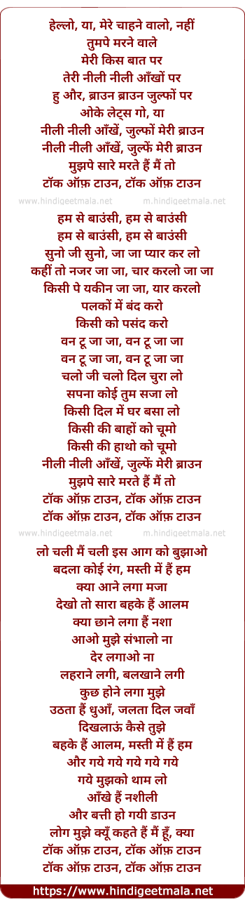 Poetic Translation - Lyrics of Talk Of The Towwn - टॉक ऑफ़ दा टाउन