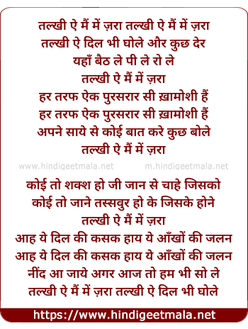 Lyrics of Talkhi-E-Mai Mein Zara - तल्खी ऐ मैं में ज़रा तल्खी ऐ मैं में ज़रा