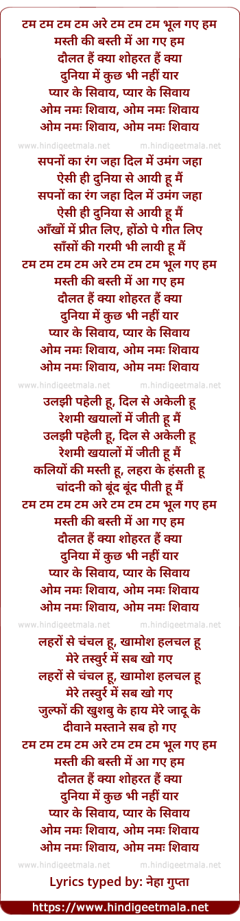Lyrics of Tam Tam Tam Tam, Are Tam Tam Tam Bhul Gae Ham - टम टम टम टम, अरे टम टम टम भूल गए हम
