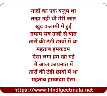 Poetic Translation - Lyrics of Tamaam Raat - यादों का एक वजुम था