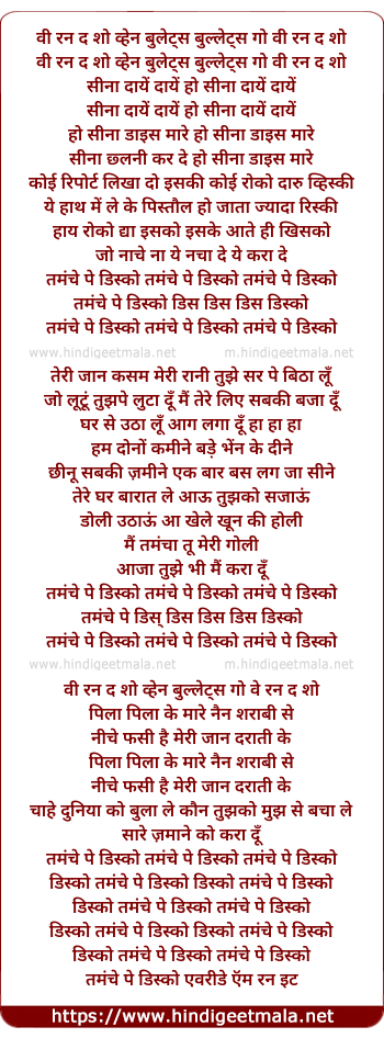 Poetic Translation - Lyrics of Tamanche Pe Disco - We Run The Show - तमंचे पे डिस्को -वी रन द शो