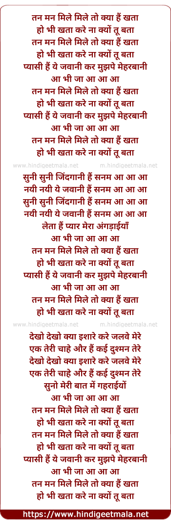Lyrics of Tan Man Mile To Kya Hai Khata - तन मन मिले तो क्या हैं खता