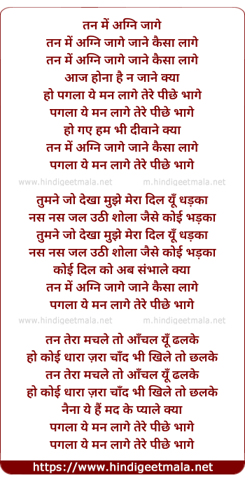 Lyrics of Tan Mein Agni Jage Jane Kaisaa Lage - तन में अग्नि जागे जाने कैसा लगे
