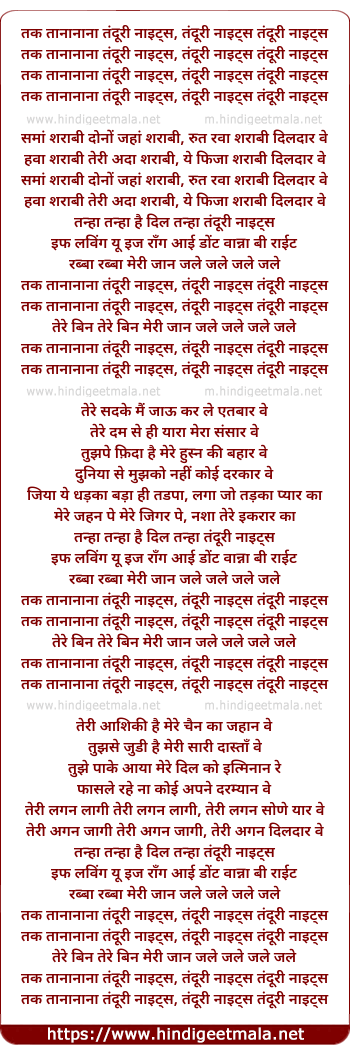 Lyrics of Tandoori Nights - तंदूरी नाइट्स