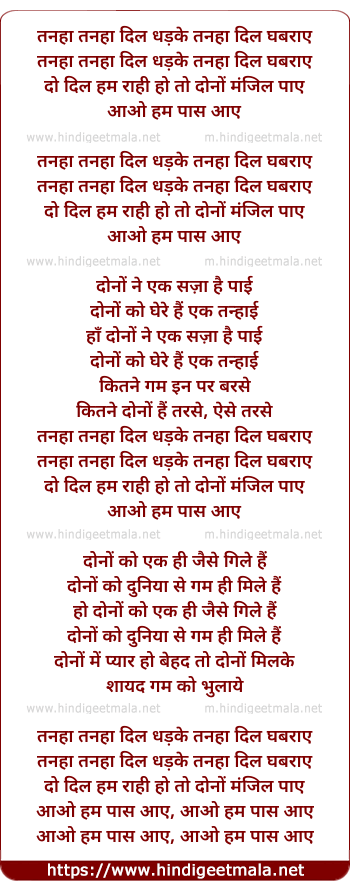Lyrics of Tanha Tanha Dil Dhadke - तन्हा तन्हा दिल धड़के