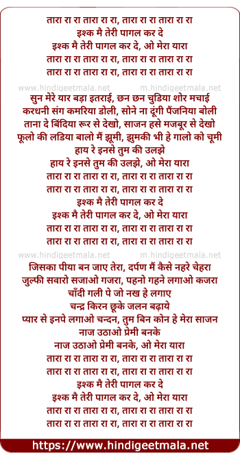 ishq mai teri pagal kar de, o mere yara