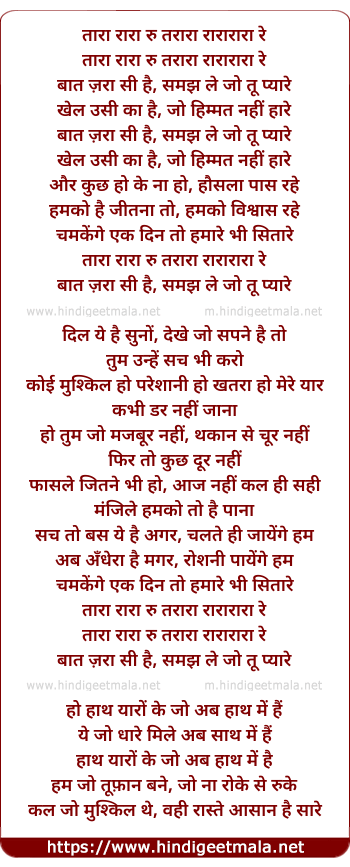 Lyrics of Tara Rara Ru... Baat Zara Si Hai - तारा रारा रु, बात ज़रा सी है