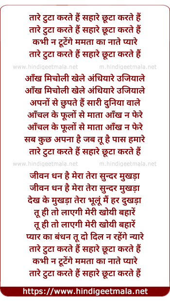 Lyrics of Tare Tuta Karte Hai Sahare Chhuta Karte Hai - तारे टुटा करते हैं सहारे छूटा करते हैं