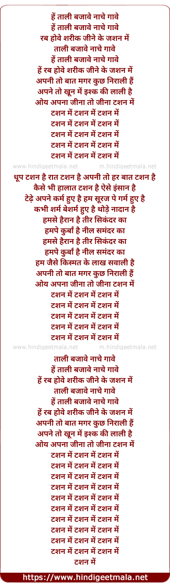 Poetic Translation - Lyrics of Tashan Mein - टशन में