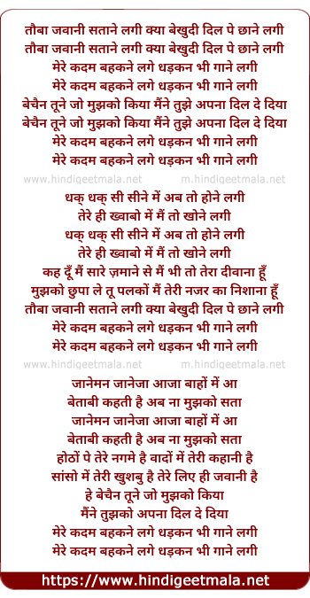 Lyrics of Tauba Jawani Satane Lagi - तौबा जवानी सताने लगी
