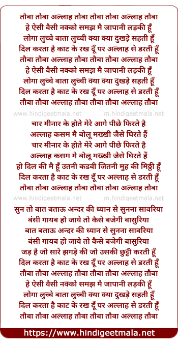 Lyrics of Tauba Tauba Allah Tauba - तौबा तौबा अल्लाह तौबा