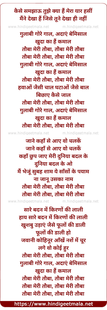 Lyrics of Taubaa Meri Taubaa - तौबा मेरी तौबा