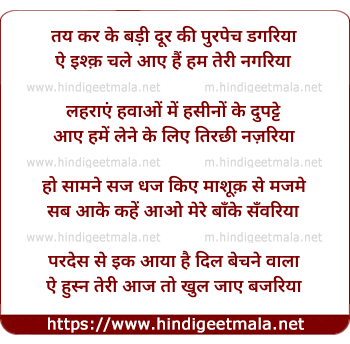 Lyrics of Tay Kar Ke Badi Dur Ki Purapech Dagariyaa - तय कर के बड़ी दूर की पुरपेच डगरिया