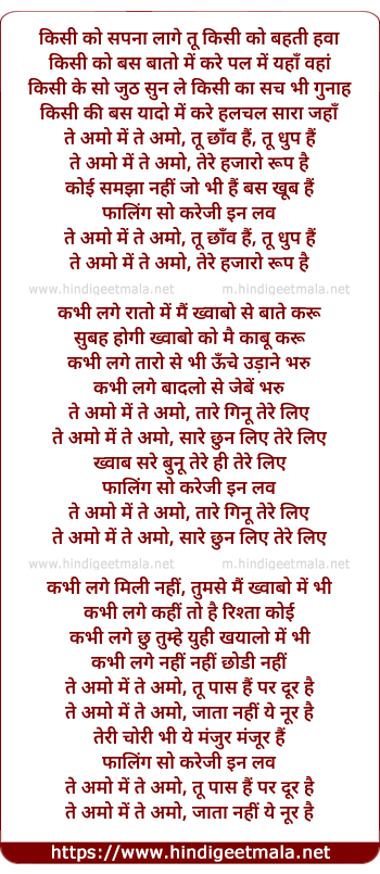 Lyrics of Te Amo Me Te Amo (Remix) - किसी को सपना लागे तू किसी को बहती हवा