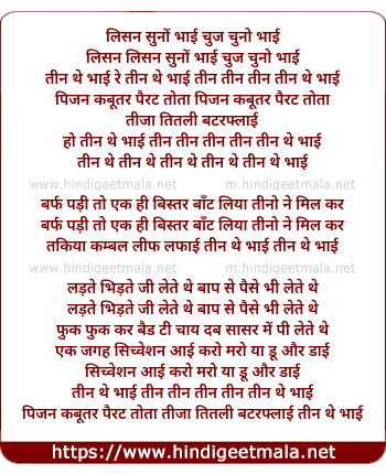 Lyrics of Teen Thay Bhai - तीन थे भाई