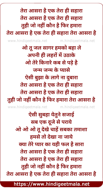 Lyrics of Tera Aasara Hai - तेरा आसरा है