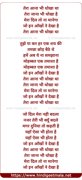 Lyrics of Tera Aana Bhi Dhoka Tha, Tera Jana Bhi Dhoka Hai - तेरा आना भी धोखा था, तेरा जाना भी धोखा है