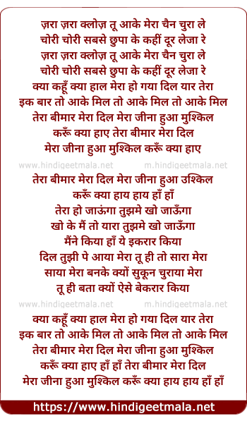 jara jara close tu aake mera chain chura le