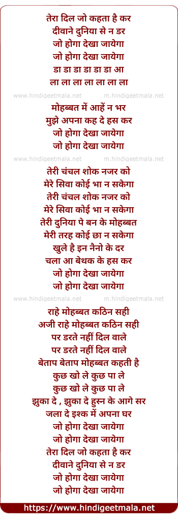 Lyrics of Tera Dil Jo Kehta Hai Kar Diwane