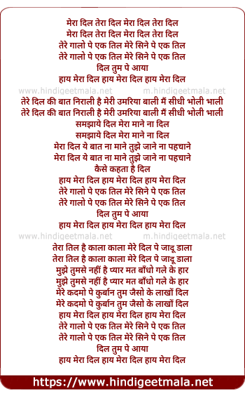 Lyrics of Tera Dil, Tere Gaalo Pe - तेरा दिल, तेरे गालो पे