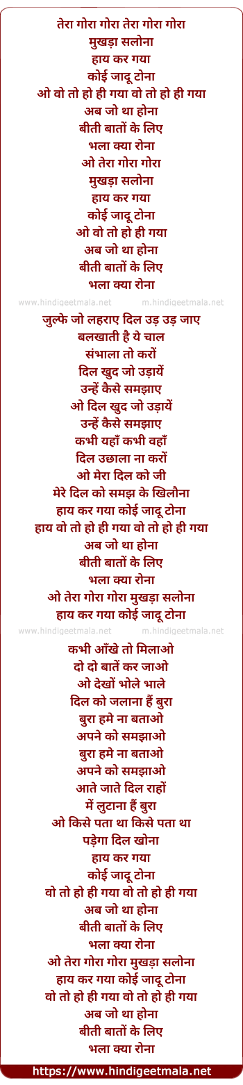 Lyrics of Tera Gora Gora Mukhda Salona - तेरा गोरा गोरा मुखड़ा सलोना