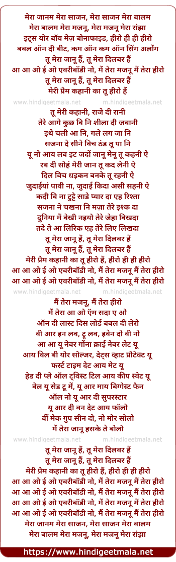 Lyrics of Tera Hero - मेरा जानम मेरा साजन, मेरा साजन मेरा बालम