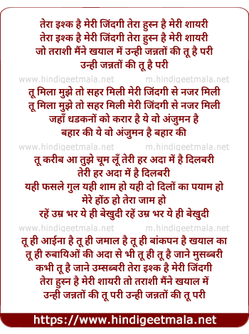tera ishk hai meri jindagi tera husn hai meri shayri