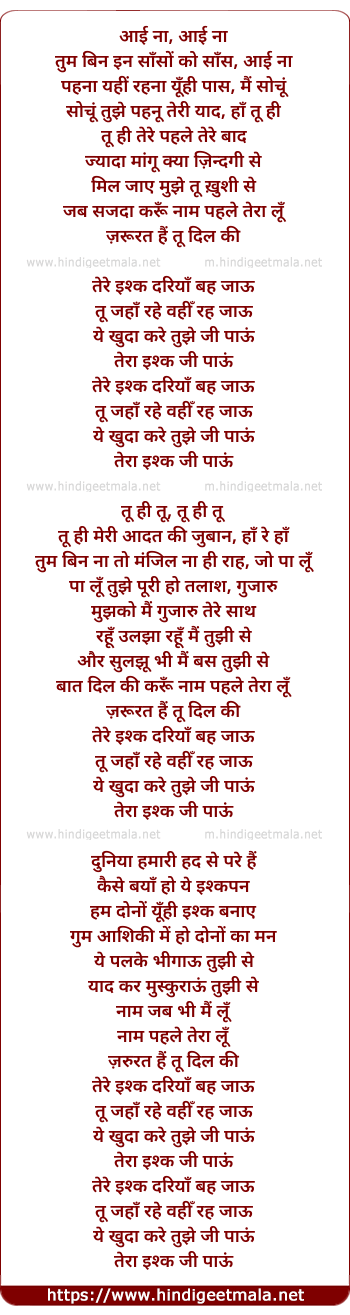 Poetic Translation - Lyrics of Tera Ishq Jee Paaun - आई ना, आई ना