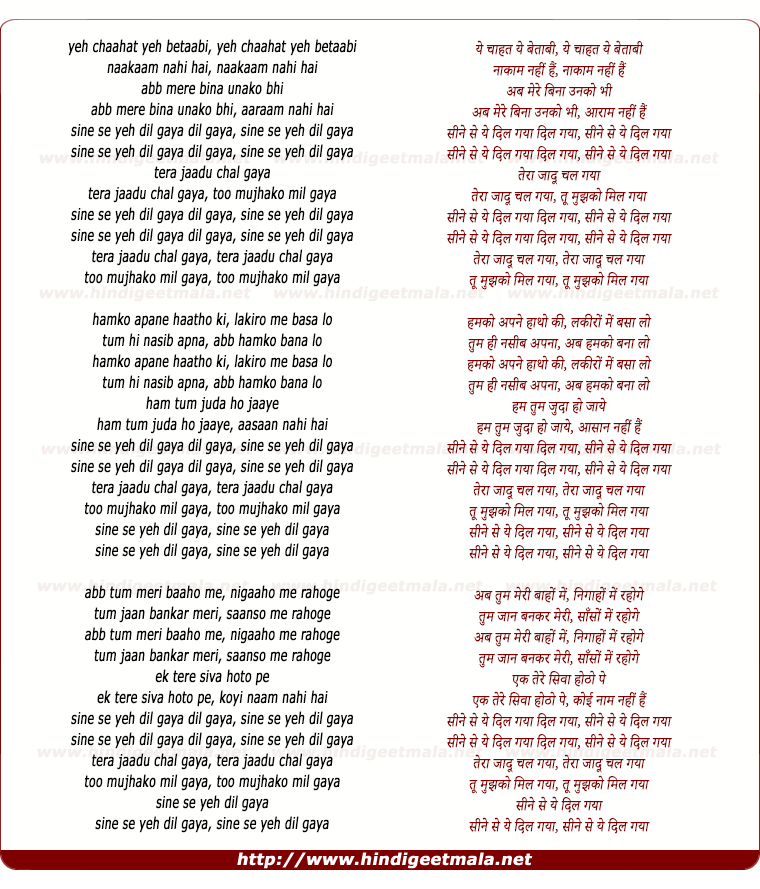 sine se yeh dil gaya dil gaya, sine se yeh dil gaya