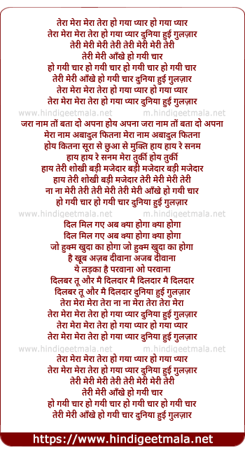Lyrics of Tera Mera Mera Tera Ho Gaya Pyar - तेरा मेरा मेरा तेरा हो गया प्यार
