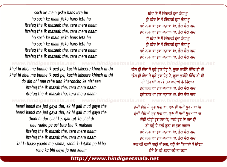 ittefaq tha ik mazaak tha, tera mera naam
