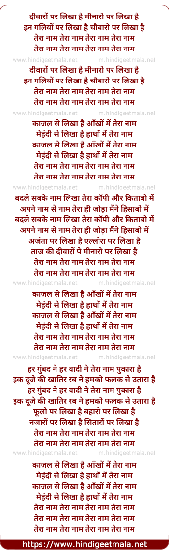 Lyrics of Tera Naam Tera Naam - तेरा नाम तेरा नाम