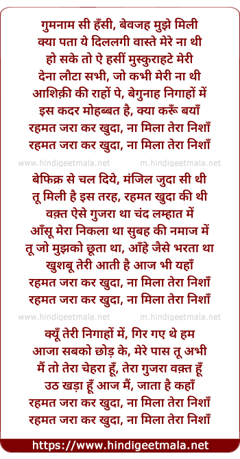 Lyrics of Tera Nishaan - गुमनाम सी हँसी, बेवजह मुझे मिली