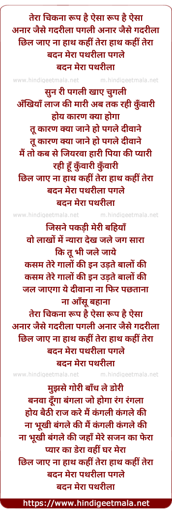 Lyrics of Tera Chikana Rup Hai Aisa - तेरा चिकना रूप है ऐसा