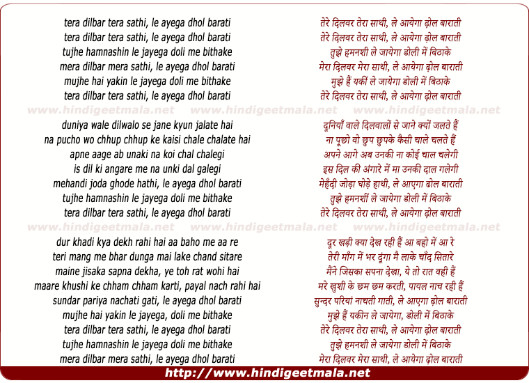 Comments for lyrics of song "Teraa Dilbar Teraa Saathee"