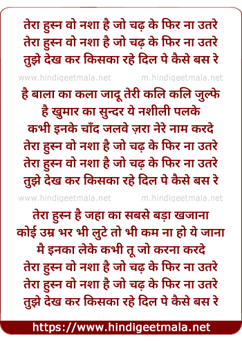 Lyrics of Teraa Husn Woh Nasha Hai - तेरा हुस्न वो नशा है