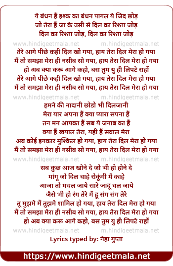 tere aage piche kahi dil kho gaya, hay tera dil mera dil ho gaya