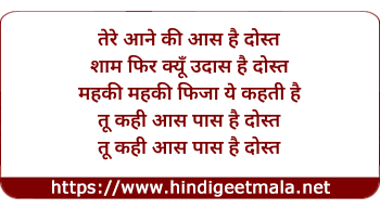 Lyrics of Tere Aane Ki Aas Hai Dost - तेरे आने की आस है दोस्त