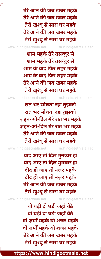 Poetic Translation - Lyrics of Tere Aane Ki Jab Khabar Mehke - तेरे आने की जब खबर महके