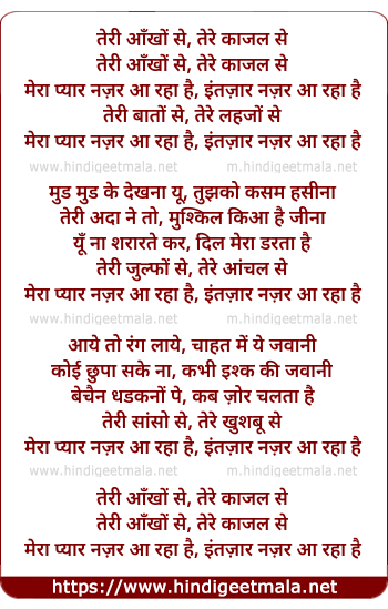 Tere Aankho Se, Tere Kajal Se - तेरी आँखों से, तेरे काजल से