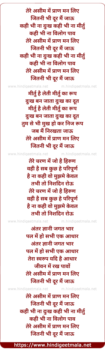 Lyrics of Tere Aseem Me - तेरे असीम में