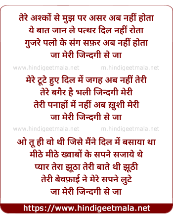Lyrics of Tere Ashko Se - तेरे अश्कों से मुझ पर असर अब नहीं होता