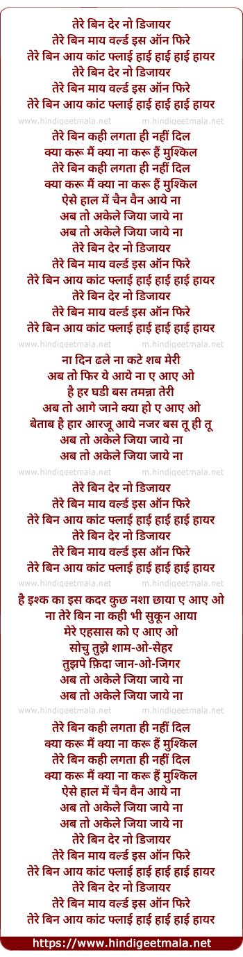 Lyrics of Tere Bin There No Desire - तेरे बिन देर नो डिजायर