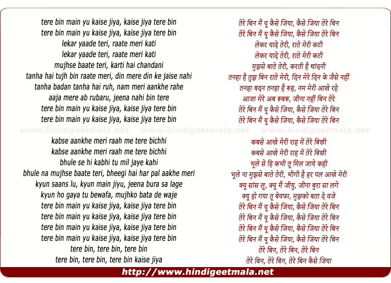 tere bin main yu kaise jiya, kaise jiya tere bin