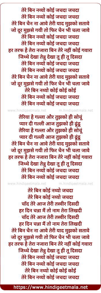 Lyrics of Tere Bin Nayyo Koi Jachada - तेरे बिन नय्यो कोई जचदा
