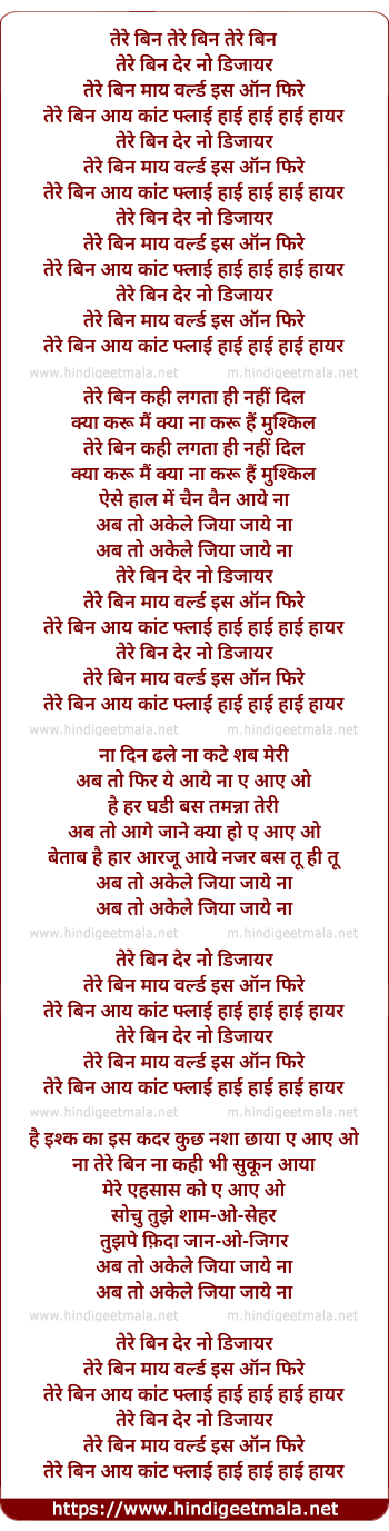 Poetic Translation - Lyrics of Tere Bin (Remix) - तेरे बिन तेरे बिन तेरे बिन