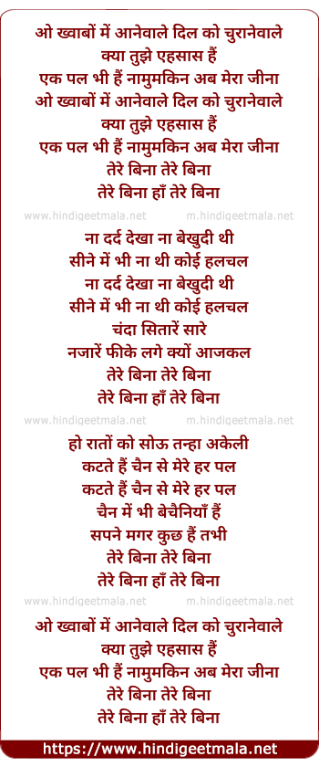 Poetic Translation - Lyrics of Tere Bina.... - तेरे बिना