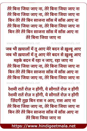 Lyrics of Tere Bina Jiya Jaye Naa - तेरे बिना जिया जाये ना
